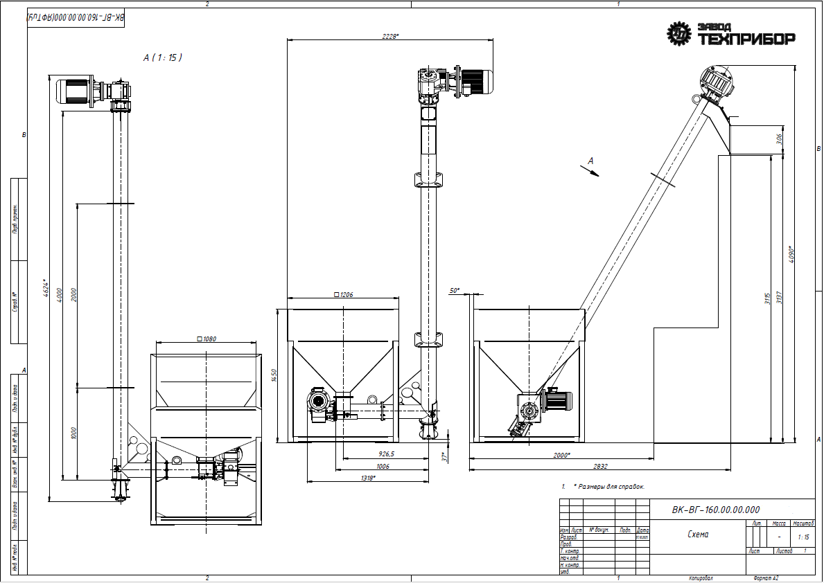Для нашего Заказчика, предприятия по производству тары и упаковки, был изготовлен и отгружен вертикальный винтовой конвейер серии ВВК-160 с приемным бункером объемом 1 м³.