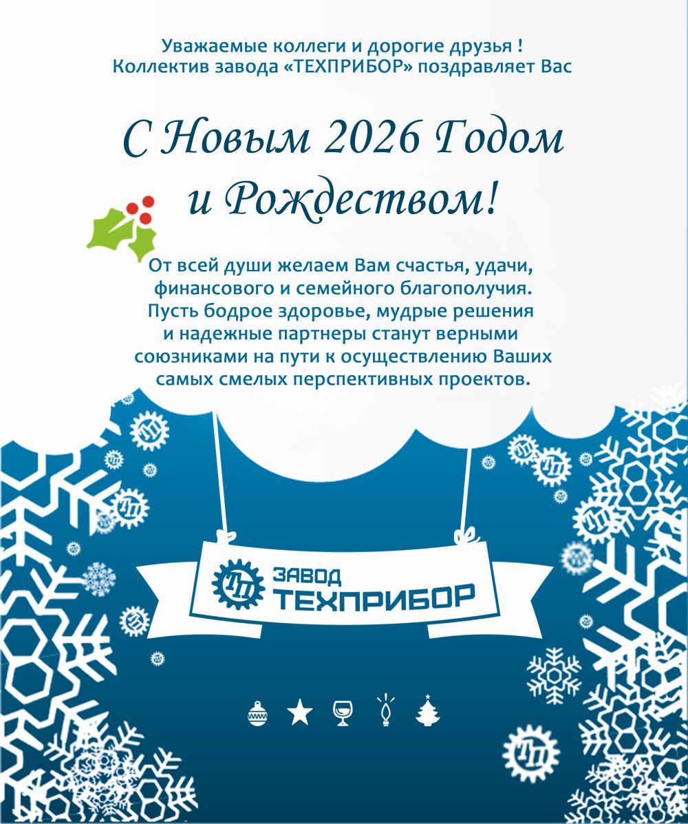 Коллектив Завода «ТЕХПРИБОР» поздравляет Вас с наступающим 2026 годом и светлым праздником Рождества.